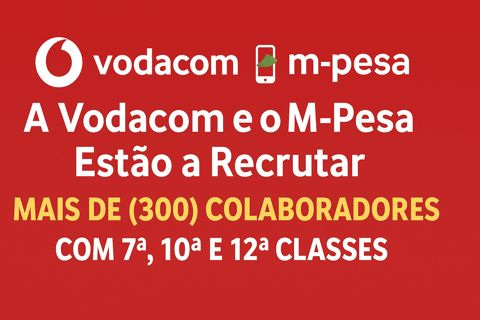 A Vodacom e M-Pesa Anunciam Mais de (300) Vagas para Candidatos com 7ª, 10ª e 12ª Classes!
